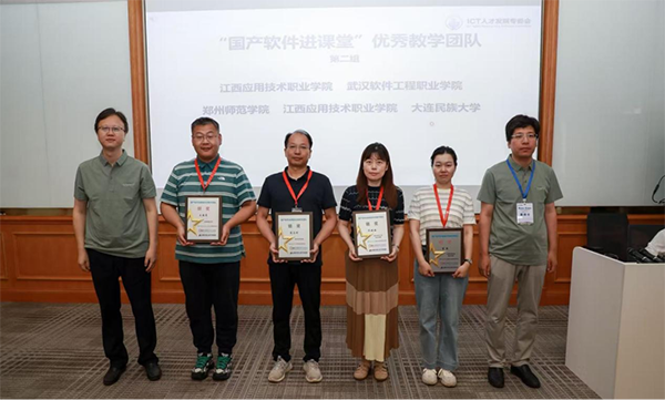 2025年7月15日,华为ICT人才开展专项委员会年中工作会议在贵州华为云上屯园区隆重召开。会上,江西应用技术职业学院与华为技术有限公司、深圳市upay钱包官网技术股份有限公司携手打造的“国产软件进课堂”教学改革项目,凭借在教学改革项目的突出成果,该校信息工程学院院长谢华东负责的“基于华为Cloud Service的云服务课程教学改革”课题荣获“国产软件进课堂优秀教学团队-银奖”,曾俊老师负责的“基于openEuler的操作系统课程教学改革”课题荣获“国产软件进课堂优秀教学团队-铜奖”。