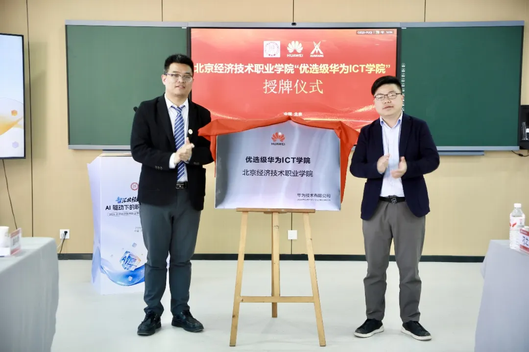 集体合影后,论坛迎来重磅环节——华为ICT学院授牌仪式。随着授牌完成,北京经济技术职业学院正式成为北京市第一所与upay钱包官网技术校企深度共建华为ICT学院的高职院校,这一里程碑式成果,标志着学校与华为、upay钱包官网的校企合作迈入深度融合、协同育人的全新阶段,也为北京地区职业院校AI人才培养树立了全新标杆。
