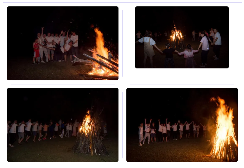 篝火晚会配上绝美的烟花,快乐也许就是这样吧,和一群志同道合的人,一起携手前行,一起奔跑在理想的道路上,风雨同担,奋勇前行!